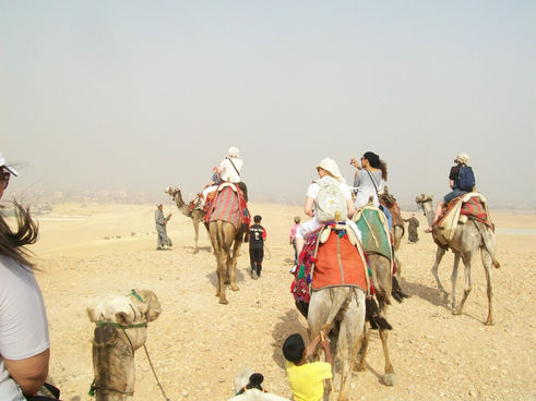 Visite du Caire (musée, papyrus, pyramides...) et bien sûr promenade à dromadaire!!!! pour finir à la piscine et le soir repas en terrasse de l'hôtel, vue sur les pyramides....